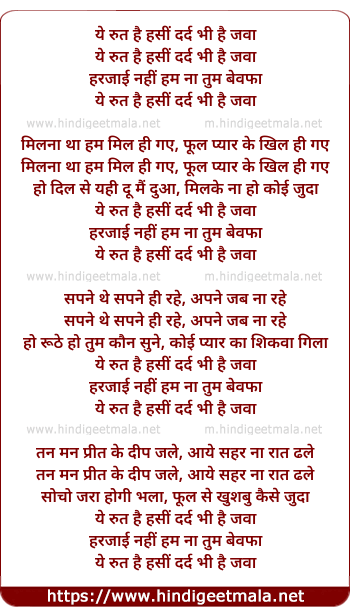Lyrics of Yeh Rut Hai Haseen, Dard Bhi Hai Jawan - ये रुत है हसीं दर्द भी है जवा