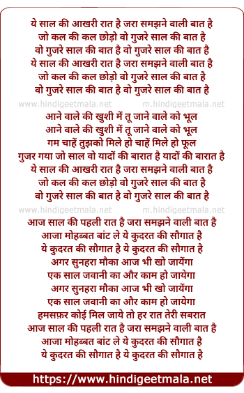 Lyrics of Yeh Sal Ki Aakhri Rat Hai - ये साल की आखरी रात है