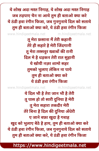 Lyrics of Ye Shokh Ada Mast Nigah - ये शोख अदा मस्त निगाह