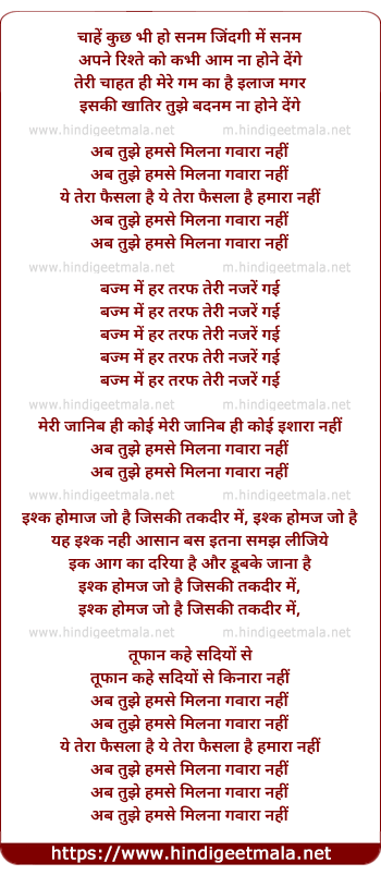 ab tujhe hamse milna gawara nahi