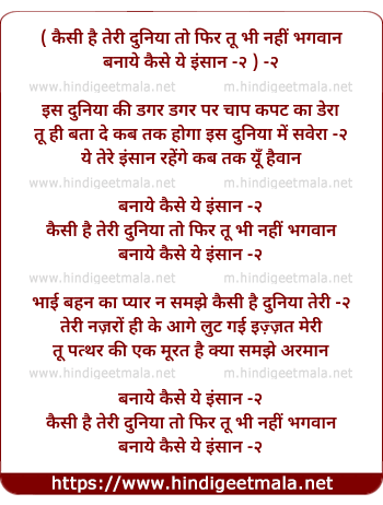 Lyrics of Yehi Hai Teri Duniyaa, Banaye Kaise Ye Insan - येही है तेरी दुनिया, बनाये कैसे ये इंसान