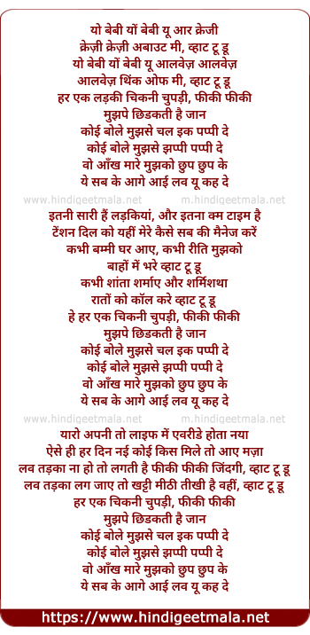 Lyrics of Yo Baby Yo Baby - यो बेबी यों बेबी