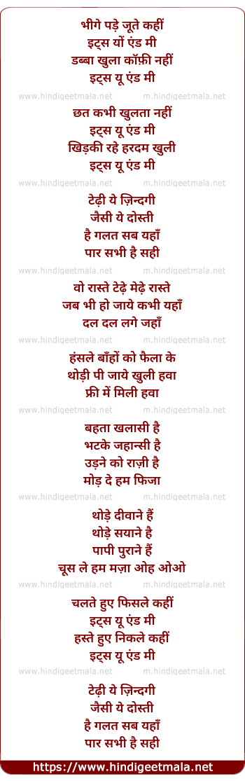 Lyrics of You And Mee - यू एंड मी