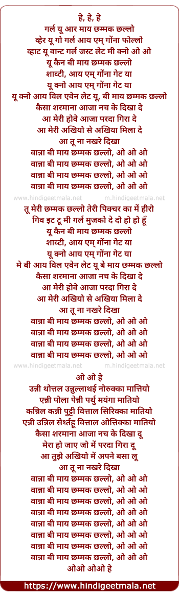Lyrics of You Are My Chammak Challo - यू आर माई छम्मक छल्लो