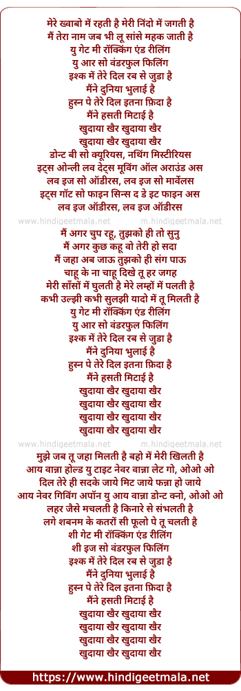 Lyrics of You Get Me Rocking And Reeling (Remix) - मेरे ख्वाबो में रहती है मेरी निंदो में जगती है