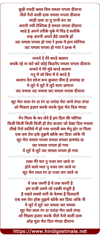 Lyrics of Ypd2 Mashup - कुड़ी नचदी क्लब विच यमला पगला दीवाना