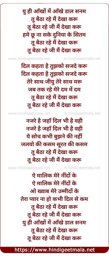 Lyrics of Yu Hi Aankho Me Aankhe Daal Sanam - यु ही आँखों में आँखे डाल सनम