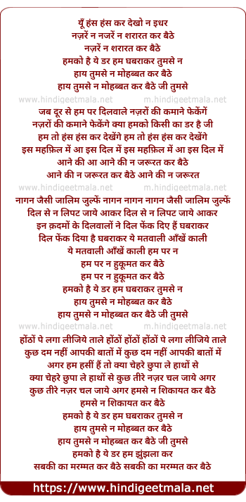 Lyrics of Yun Hans Hans Kar Dekho Na Idhar Nazare Na Sararat Na Kar Baithe - यूँ हंस हंस कर देखो ना इधर नजरे ना सरारत ना कर बैठे