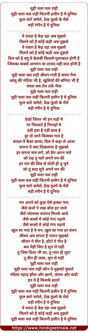 Lyrics of Yun Hi Chala Chal - यूँ ही चला चल