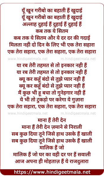 Lyrics of Yun Khun Garibo Ka Bahati Hai Khudai - यूँ खून गरीबो का बहाती हैं खुदाई