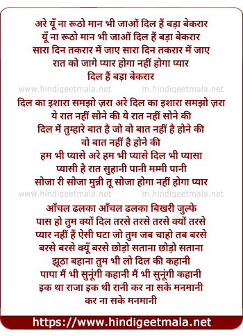 arey yu na rutho maan bhi jaao dil hai bada bekraar