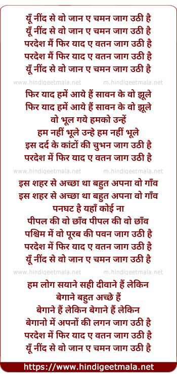 Lyrics of Yu Nind Se Wo Jan E Chaman Jag Uthi Hai - यूँ नींद से वो जान ए चमन जाग उठी है