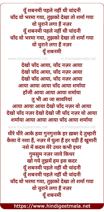 Lyrics of Yu Shabnami Pehle Nahi Thi Chandani - यूँ शबनमी पहले नहीं थी चांदनी