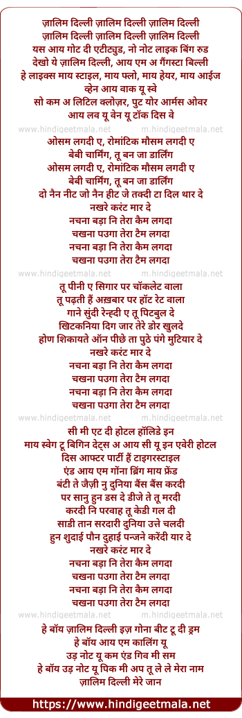 Lyrics of Zaalim Dilli - ज़ालिम दिल्ली