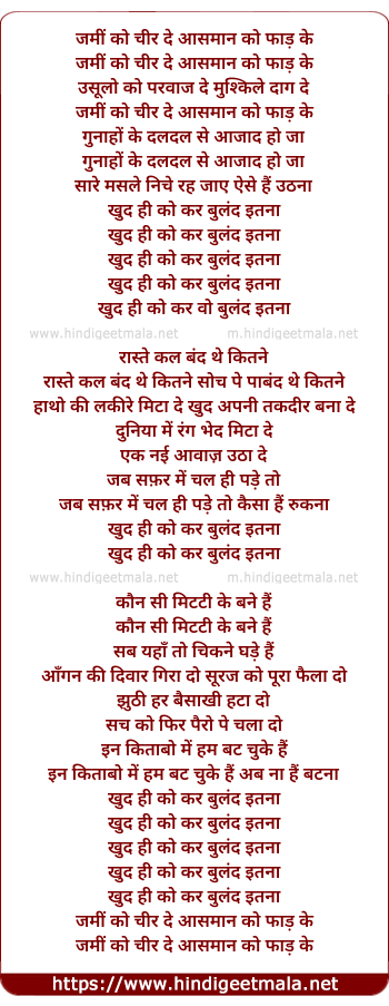 Lyrics of Zameen Ko Cheer De - जमीं को चीर दे