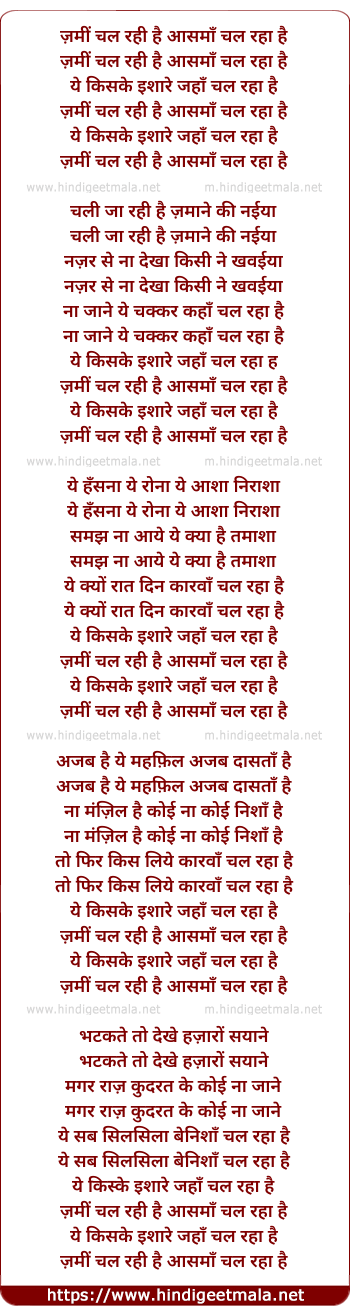 Lyrics of Zamin Chal Rahi Hai Aasamaan Chal Rahaa Hai - ज़मीं चल रही है आसमाँ चल रहा है