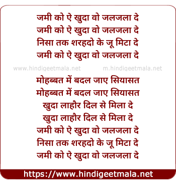 Lyrics of Zamin Ko Aye Khuda - जमी को ऐ खुदा वो जलजला दे