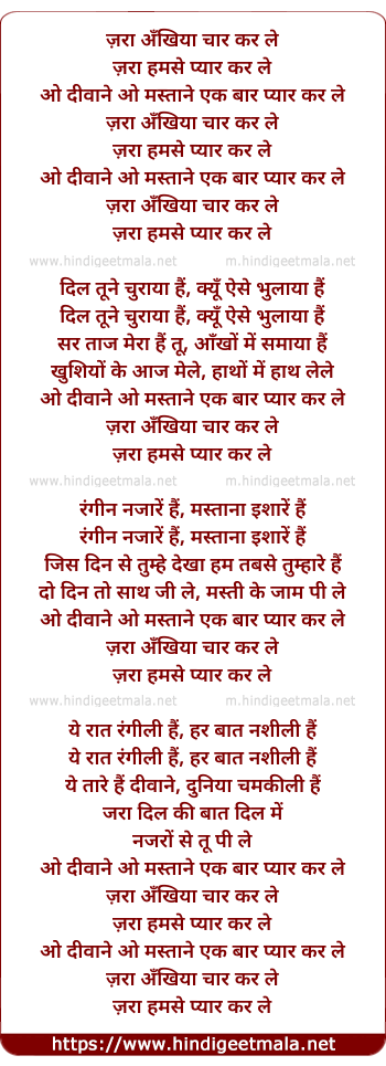Lyrics of Zara Ankhiya Char Kar Lo - ज़रा अँखिया चार कर ले