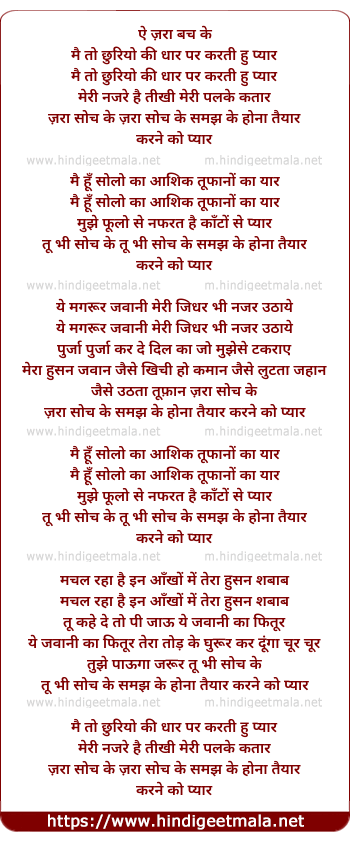 Lyrics of Zara Bach Ke - जरा बच के