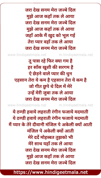 Lyrics of Zara Dekh Sanam Mera Jajbe Dil - जरा देख सनम मेरा जज्बे दिल