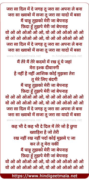 Lyrics of Zara Sa (Power Ballad) - जरा सा दिल में दे जगह तू जरा सा अपना ले बना