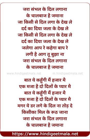 Lyrics of Zara Sambhal Ke Dil Lagana - जरा संभल के दिल लगाना