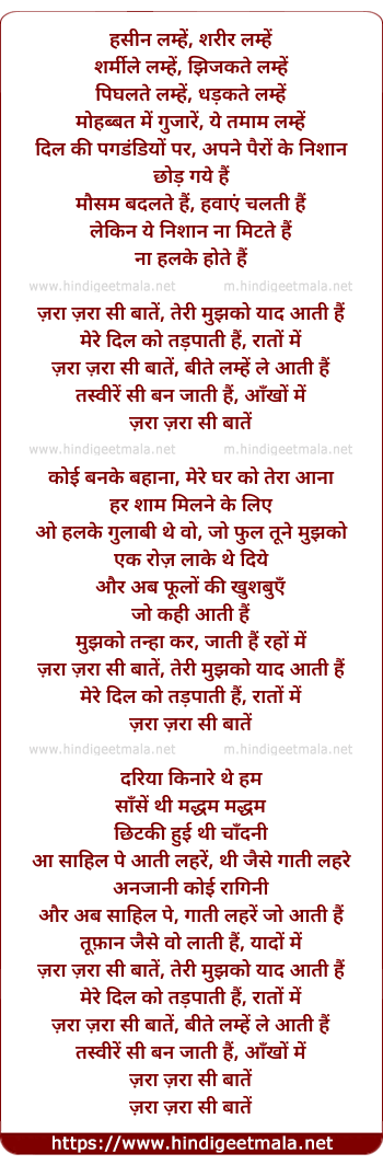 Lyrics of Zara Zara Si Baate - हसीन लम्हें, शरीर लम्हें