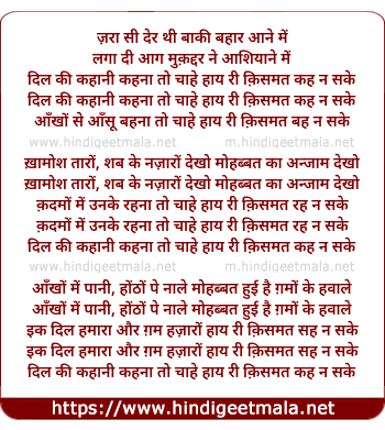 Lyrics of Zaraa Si Der Thi Baaki Bahaar Aane Me - ज़रा सी देर थी बाकी बहार आने में
