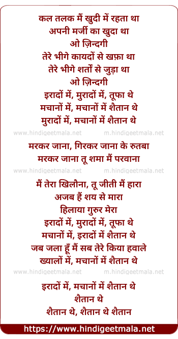 Lyrics of Zeendagi - कल तलक मैं खुदी में रहता था