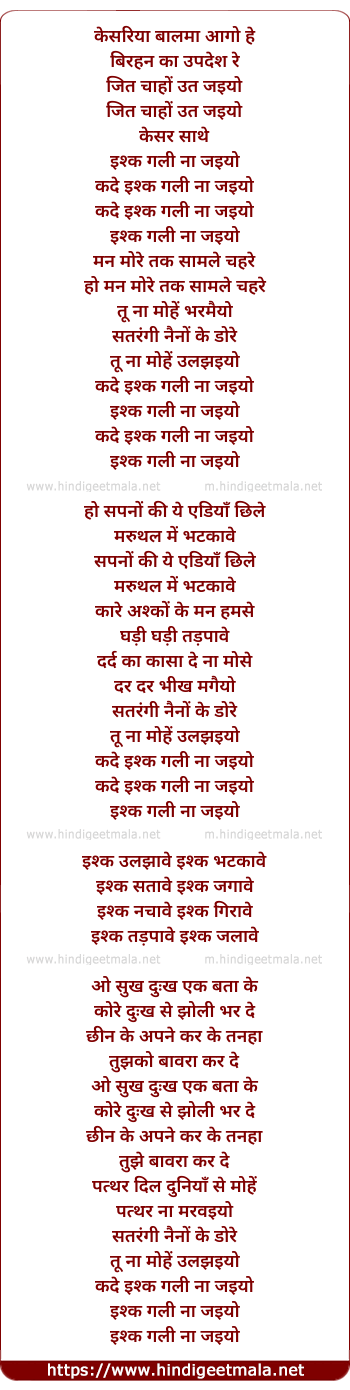 Lyrics of Zibah Karde - केसरिया बालमा आगो हे