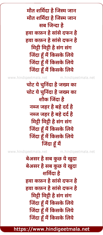 Lyrics of Zinda Hoon Main - 2 - जिन्दा हूँ मैं