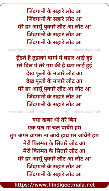 Lyrics of Zindagani Ke Sahare Laut Aa - जिंदगानी के सहारे लौट आ