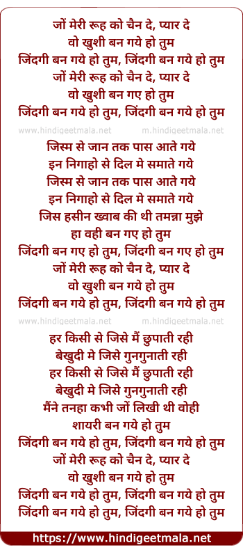 Lyrics of Zindagi Ban Gaye Ho Tum - जिंदगी बन गये हो तुम