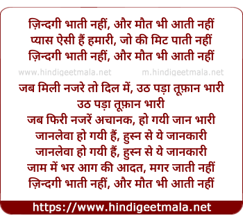 Lyrics of Zindagi Bhati Nahi Aur Maut Bhi Aati Nahi - ज़िन्दगी भाती नहीं, और मौत भी आती नहीं