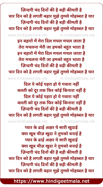 Lyrics of Zindagi Chand Dino Ki Hai, Badi Kimti Hai - ज़िन्दगी चंद दिनों की है, बड़ी कीमती है