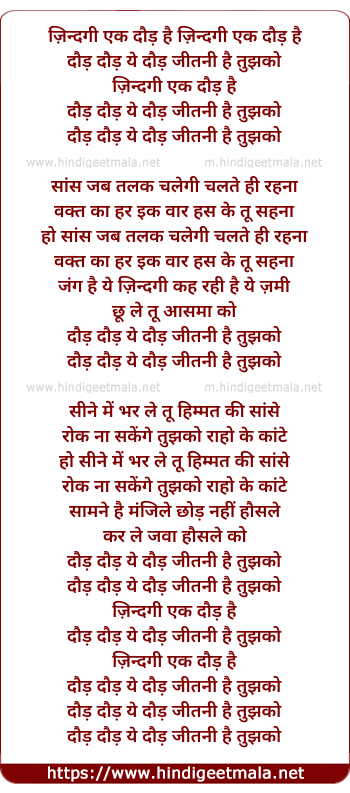 Lyrics of Zindagi Ek Daud Hai - ज़िन्दगी एक दौड़ है