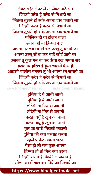 Lyrics of Zindagi Fareb Hai - लेफ्ट राईट लेफ्ट लेफ्ट लेफ्ट अटेन्सन