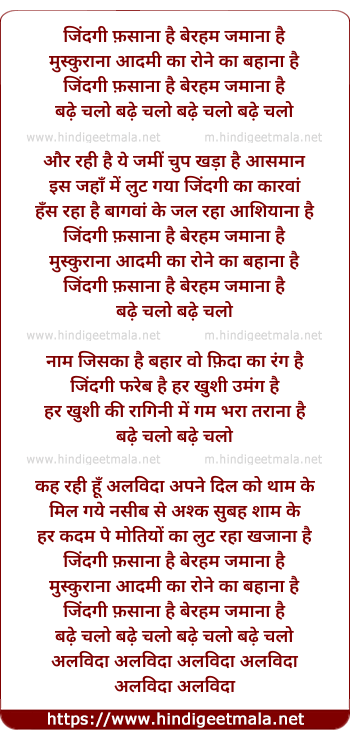 Lyrics of Zindagi Fasana Hai Beraham Jamana Hai - जिंदगी फ़साना है बेरहम जमाना है