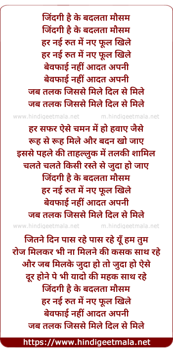 Lyrics of Zindagi Hai Ke Badalta Mausam - जिंदगी है के बदलता मौसम