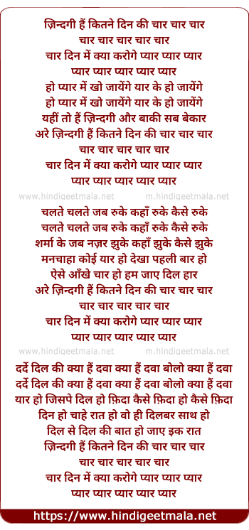 zindagi hai kitne din ki chaar chaar chaar