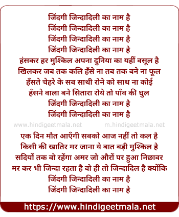 Lyrics of Zindagi Jindadili Ka Nam Hai - जिंदगी जिन्दादिली का नाम है
