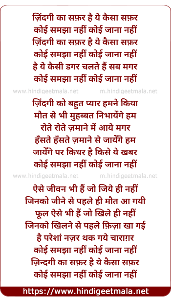 Lyrics of Zindagi Ka Safar, Hai Ye Kaisa Safar - ज़िंदगी का सफ़र है ये कैसा सफ़र