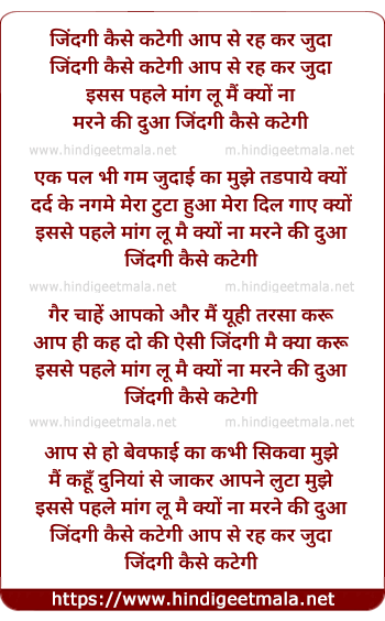 Lyrics of Zindagi Kaise Kategi Aap Se Rah Kar Judaa - जिंदगी कैसे कटेगी आप से रह कर जुदा