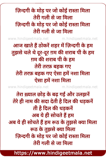 Lyrics of Zindagi Ke Mod Par Jo Koi Raastaa Milaa - ज़िन्दगी के मोड़ पर जो कोई रास्ता मिला