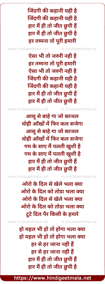 This song is about life. it says ... Zindagi ki kahani yehi hai,, haar mein