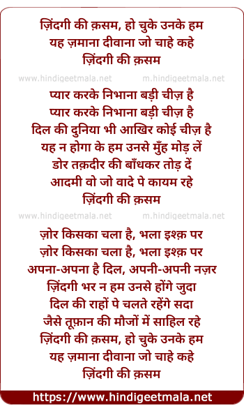 Lyrics of Zindagi Ki Qasam Ho Chuke Unake Ham - ज़िंदगी की क़सम, हो चुके उनके हम