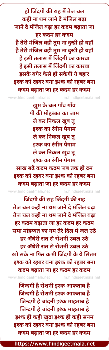 Lyrics of Zindagi Ki Raah Me Tez Chal - जिंदगी की राह में तेज चल