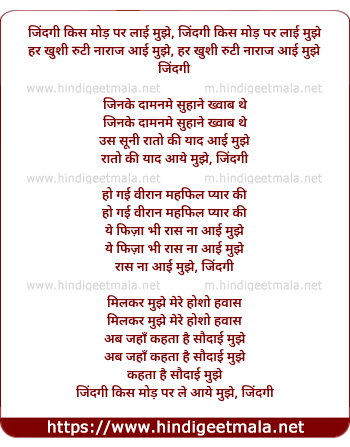 Lyrics of Zindagi Kis Mod Par Layi Mujhe - जिंदगी किस मोड़ पर लाई मुझे