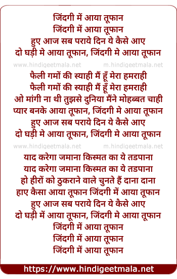 Lyrics of Zindagi Men Aaya Tufaan - जिंदगी में आया तूफान
