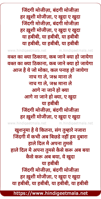 Lyrics of Zindagi Mojizah Sa, Bandagi Mojizah Sa - जिंदगी मोजीज़ा, बंदगी मोजीज़ा